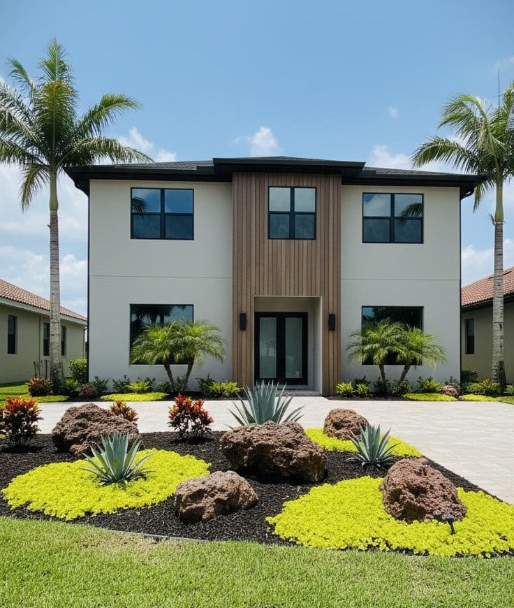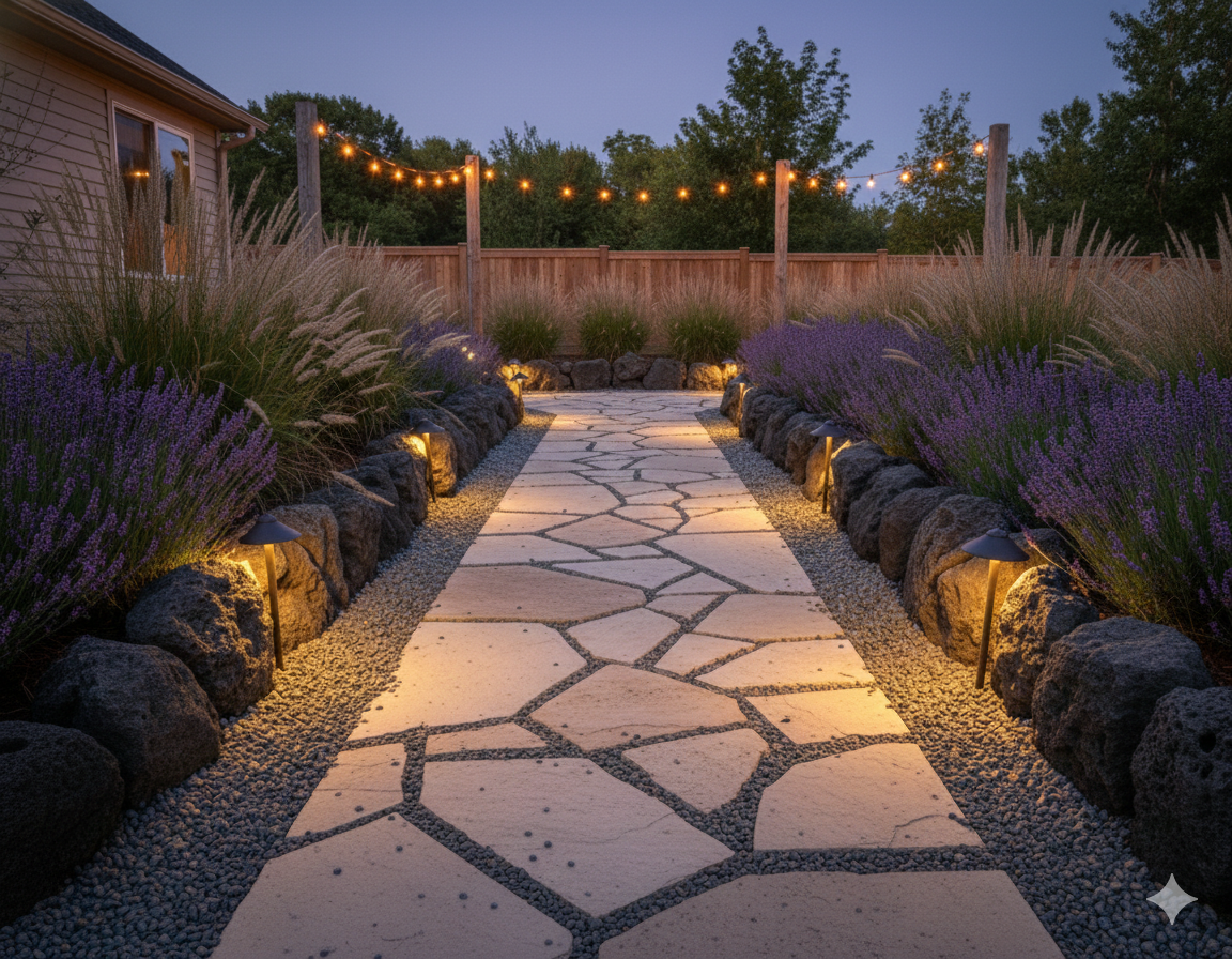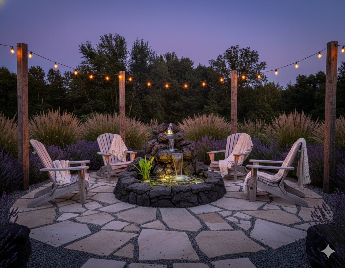 - Accent fire pits or water features for a cohesive, fiery aesthetic.